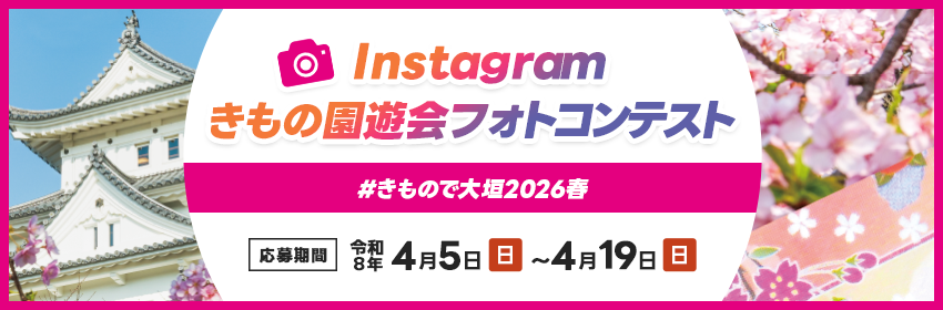 十万石の城下町「大垣」は、町人文化が開花した元禄時代から美濃路沿いに数多くの呉服店が軒を連ね、賑わいをみせていました。情緒あふれる大垣を、着物姿でまち歩きしてみませんか。