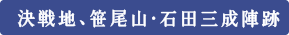 決戦地北西に位置する小さな山が笹尾山で、「石田三成陣跡」の碑があります。関ケ原は交通の要所といわれているだけに、南西にある北国街道が軍事上重要なポイントになりました。そんな背景もあり三成は島左近と共にここ笹尾山に布陣したと考えられます。